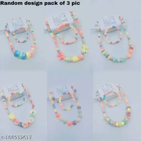 3 Set Girls' Necklace & Bracelet stretchable Jewelry Set For Kids & Baby Girls | Safe & Soft for Skin
