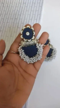 Chalo Bazar black and silver heavy jhumka with beads Earring