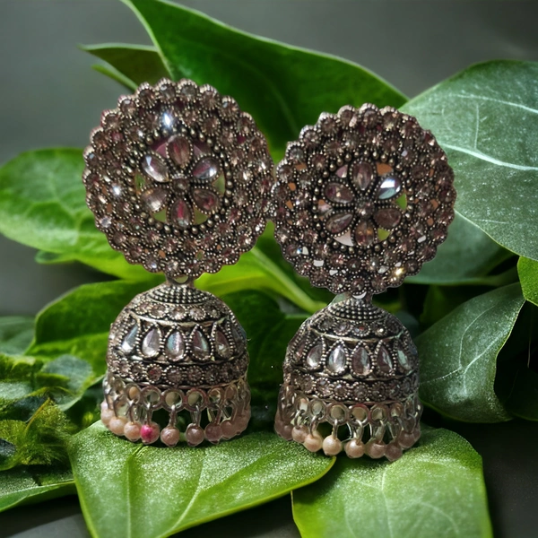 Fancy earringsBase Metal : Brass & CopperPlating : Oxidised SilverSizing : AdjustableStone Type : Artificial StonesType : JhumkhasNet Quantity (N) : 1EarringsCountry of Origin : India