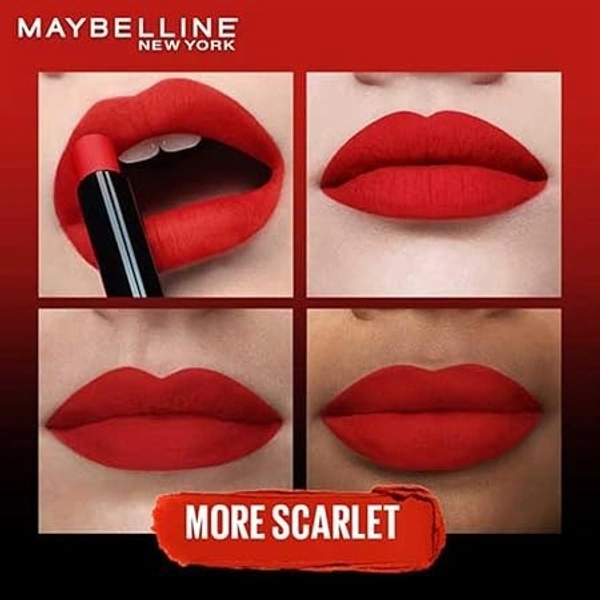 - Contents: 1x Maybelline New York Colour Sensational Ultimattes Lipstick, Matte Finish, Bold Colour, Enriched With Jojoba Oil, 299 More Scarlet, 1.7 g