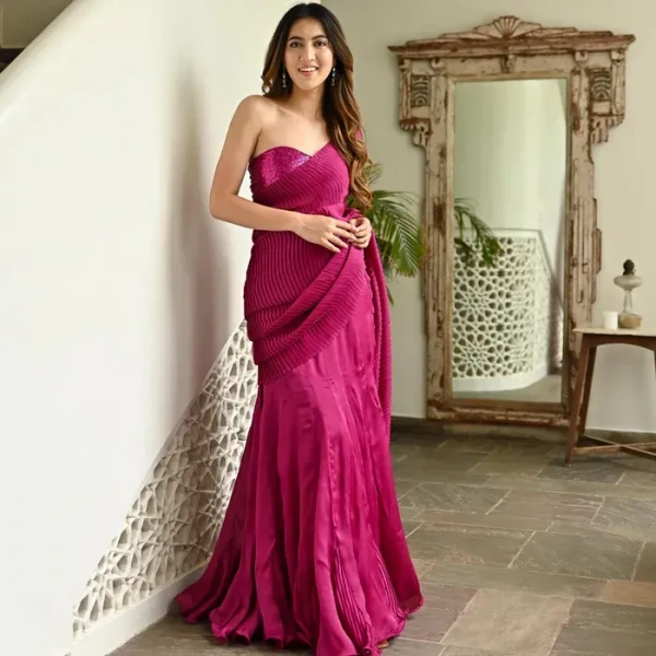 Pink Pleated Saree