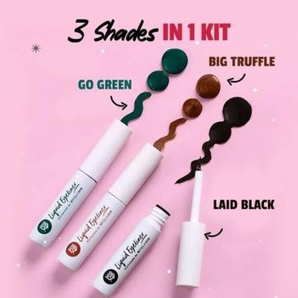 POPxo Liquid Eyeliner Kit - Eye Gotchu (Set of 3) | Smudge-proof, Long Lasting Black, Matte Finish Brown and Green Shade Liquid Eyeliners